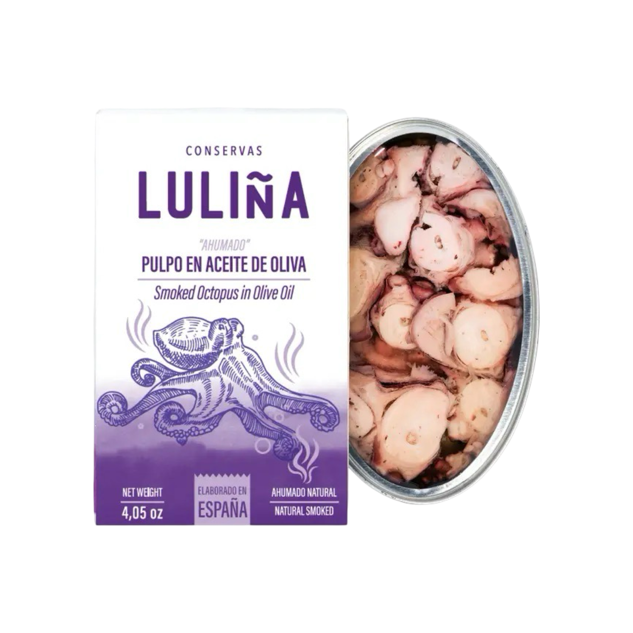 Caught off the coast of Galicia and gently smoked using natural wood, this octopus (Octopus vulgaris) is then hand-cut and preserved in high-quality olive oil with a pinch of sea salt. Luliña’s smoked pulpo is a refined take on a Spanish classic—offering clean, oceanic flavor with just the right amount of smoke.