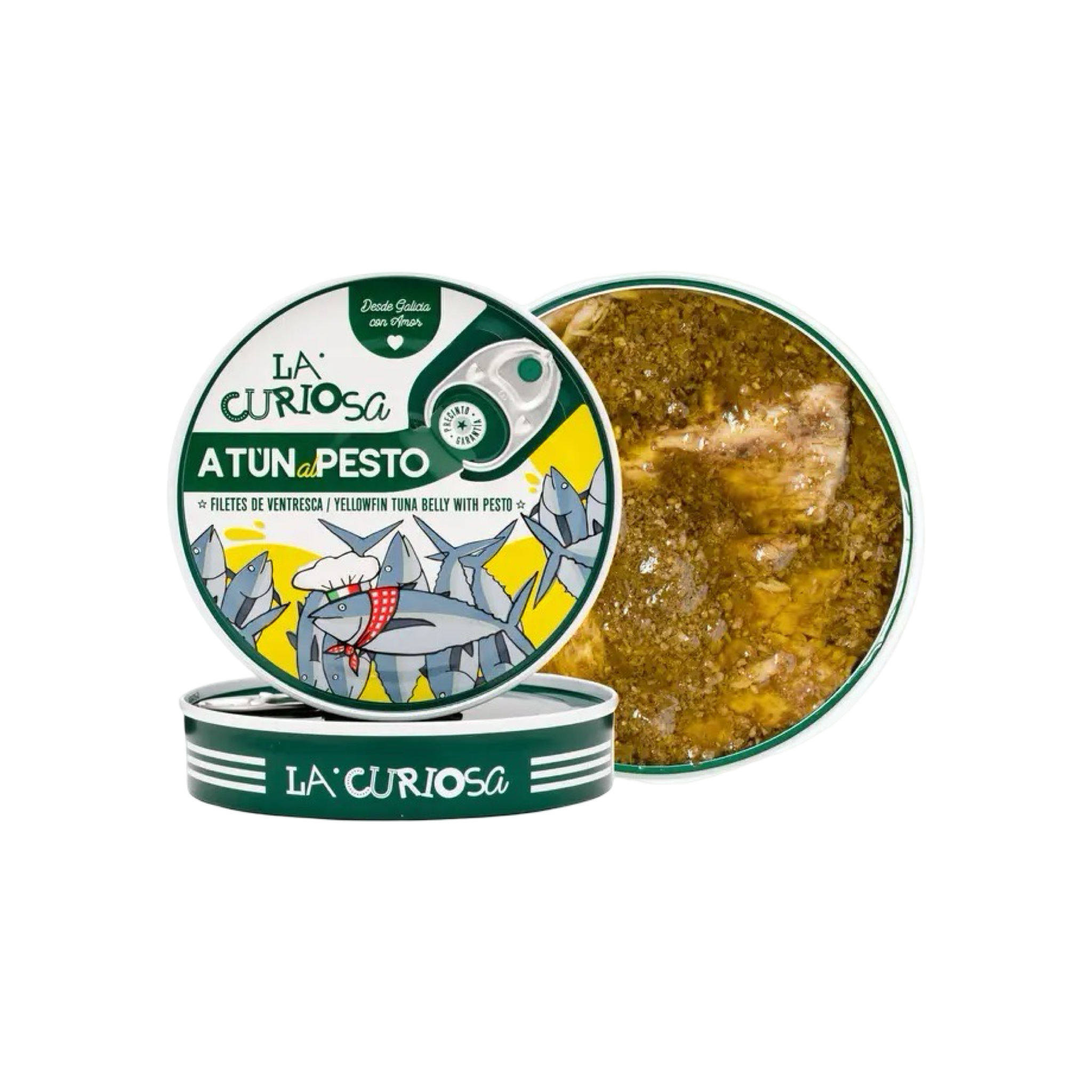 After curry came pesto. This tin continues La Curiosa’s flavor journey—pairing buttery tuna belly with a bold, herb-forward pesto made from fresh basil, Parmigiano-Reggiano, and walnuts.